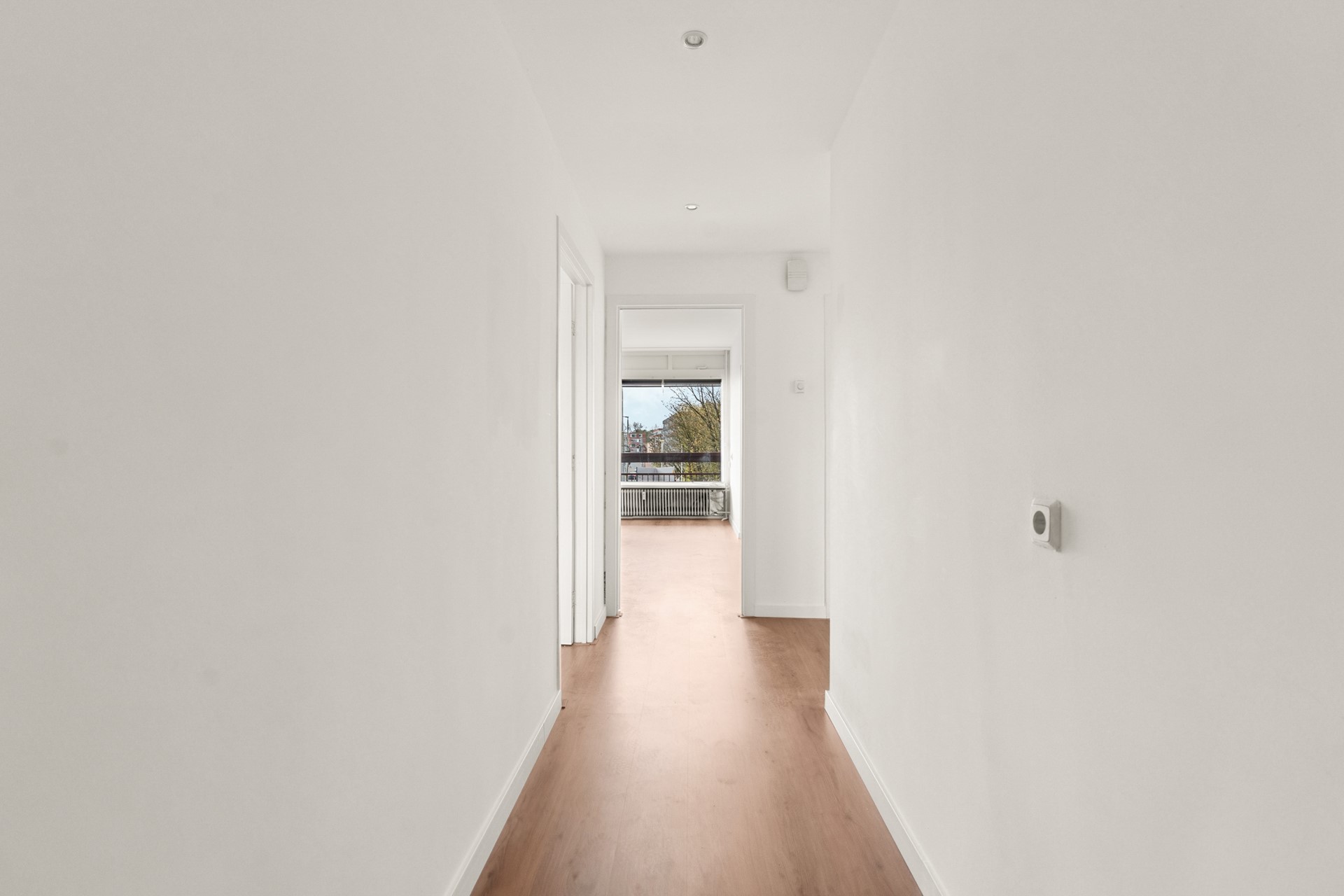 Het appartement beschikt over twee goed bemeten slaapkamers. De hoofdslaapkamer ligt aan de achterzijde, is bereikbaar via de woonkamer en biedt toegang tot het balkon. De tweede slaapkamer ligt aan de voorzijde.