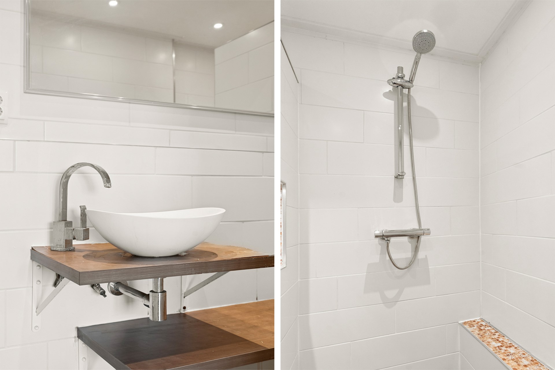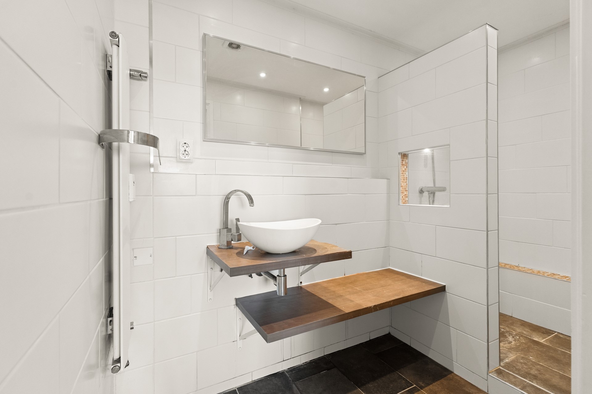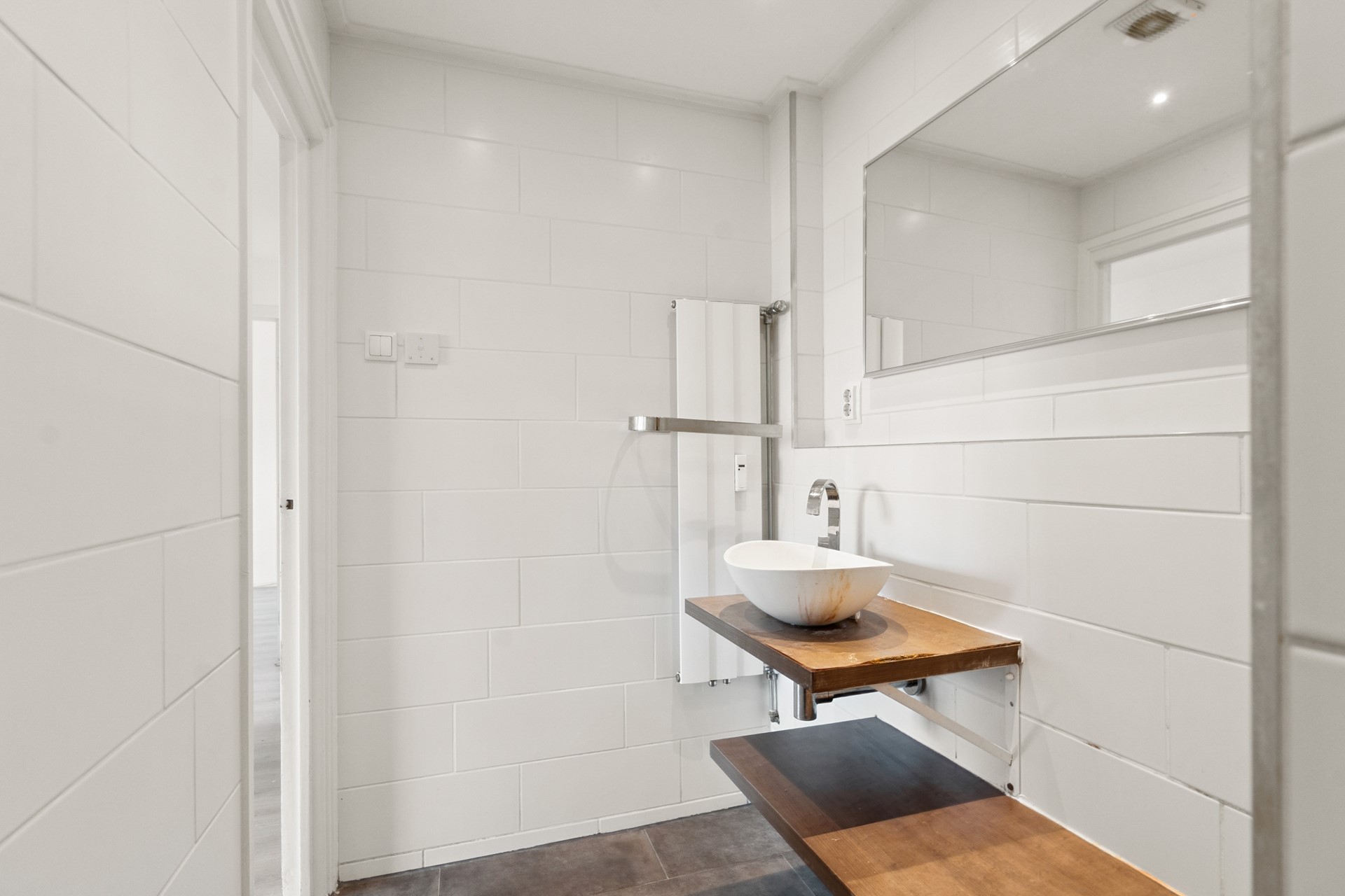De badkamer (vernieuwd in 2020) is uitgerust met een douche en wastafelmeubel. Het toilet is separaat en eveneens vernieuwd in 2020.
