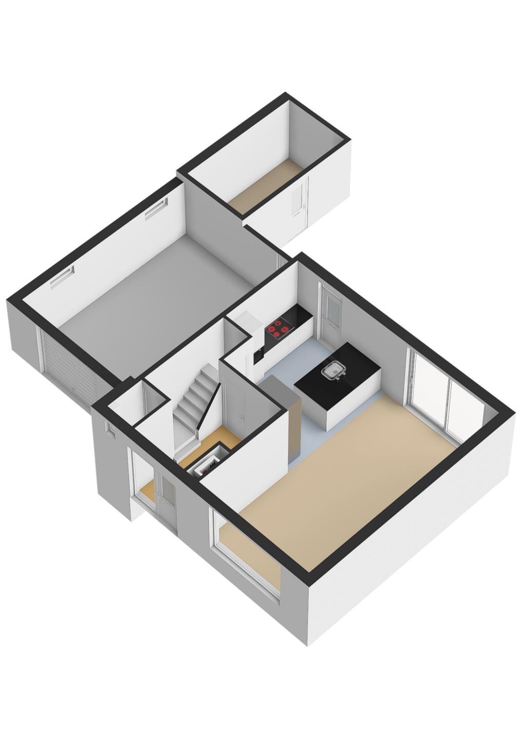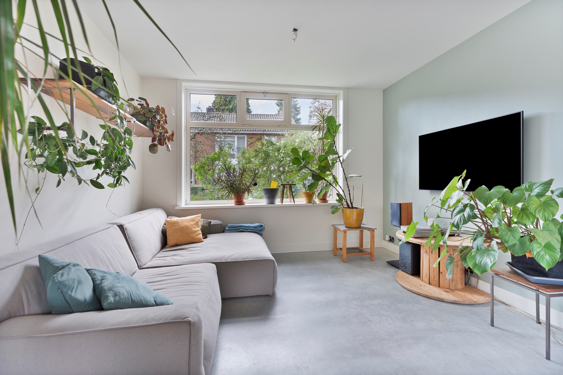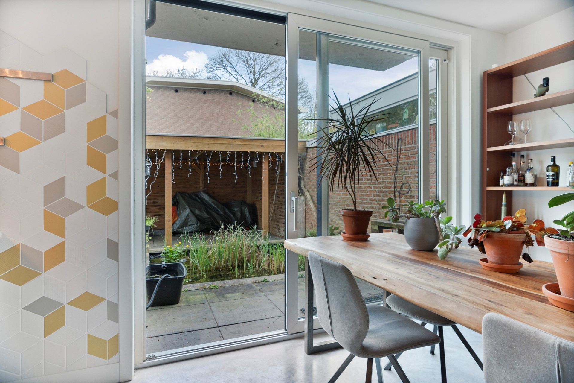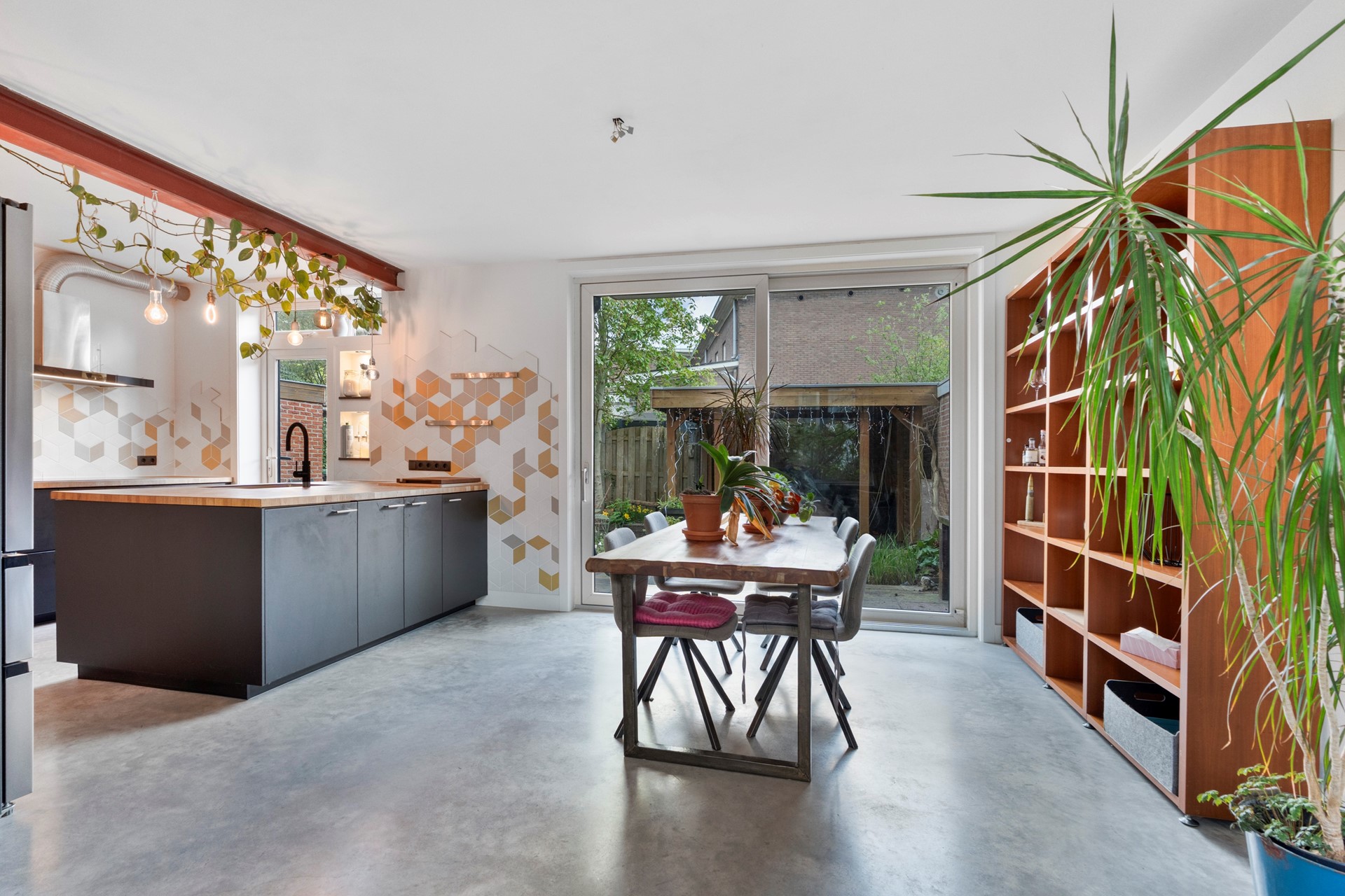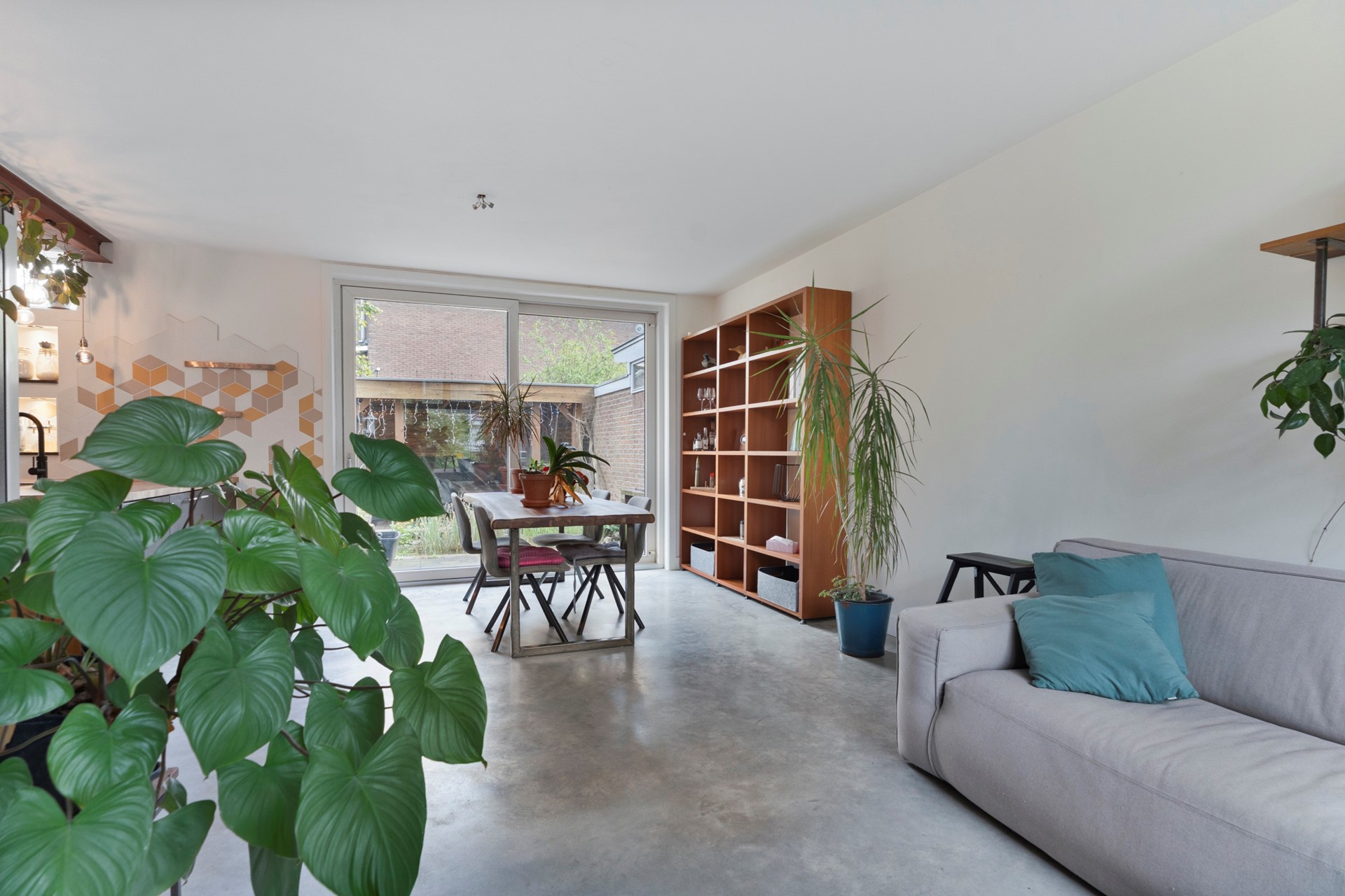 De lichte, tuingerichte woonkamer kenmerkt zich door grote raampartijen en een prettige lichtinval. Via de schuifpui en een aparte deur vanuit de keuken heeft u direct toegang tot de achtertuin. De gehele begane grond is voorzien van comfortabele vloerverwarming.