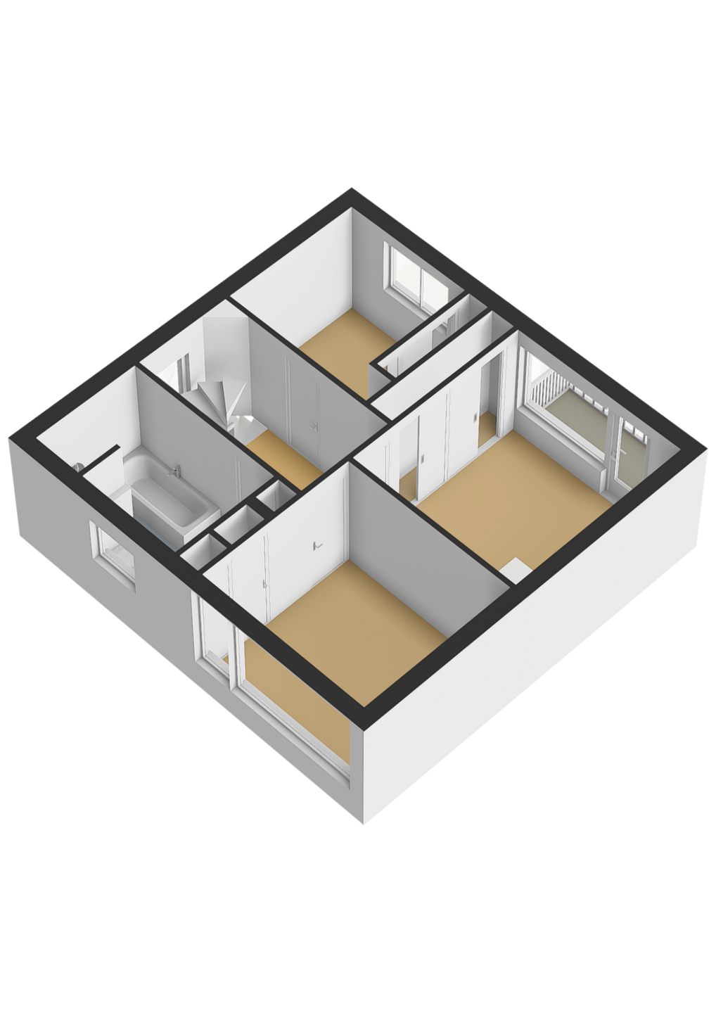 De overloop geeft toegang tot drie ruime slaapkamers, allen voorzien van praktische inbouwkasten en een laminaatvloer. De hoofdslaapkamer beschikt over toegang tot een balkon. De badkamer is compleet ingericht met een ligbad, douche, badmeubel en tweede toilet.