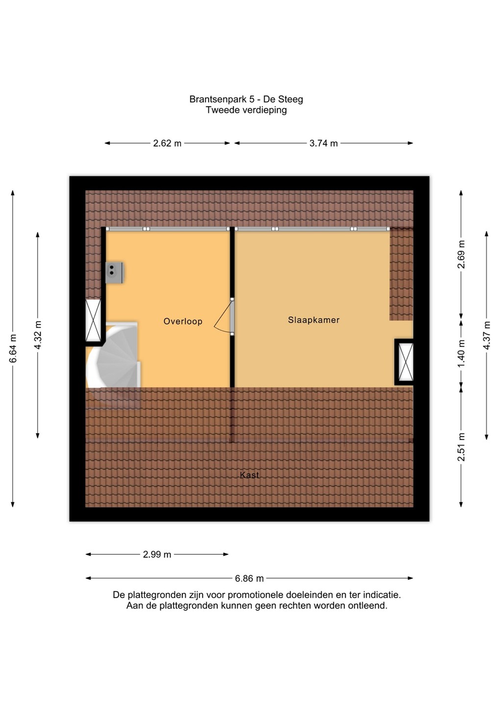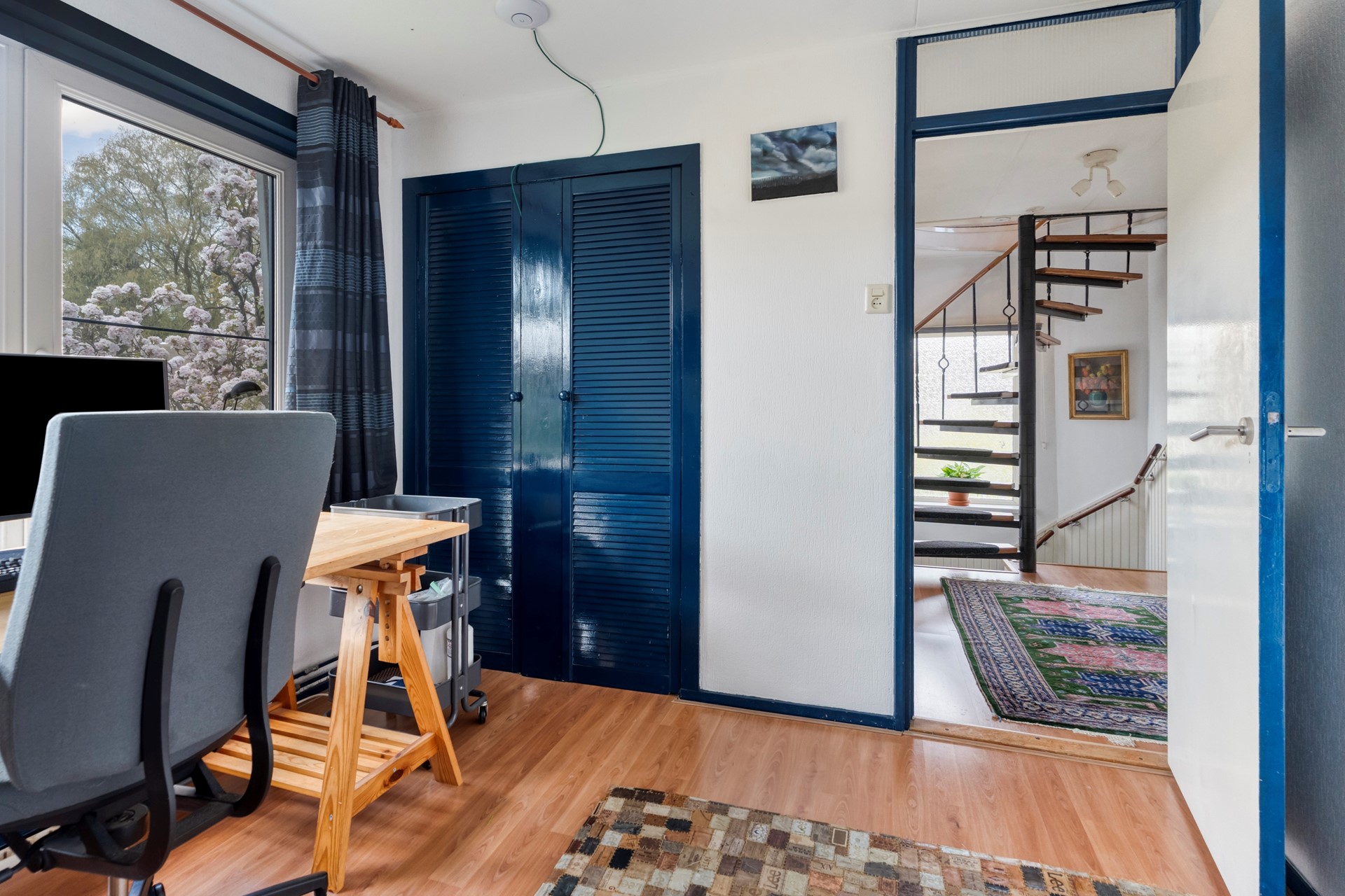 Via een open trap bereikt u de tweede verdieping met overloop en opstelplaats van de cv-installatie. Dankzij de dakkapel is hier een volwaardige vierde slaapkamer gerealiseerd. Daarnaast is er praktische bergruimte aanwezig achter de knieschotten.