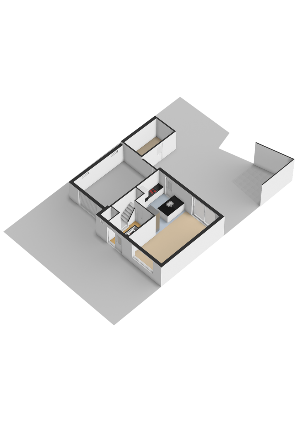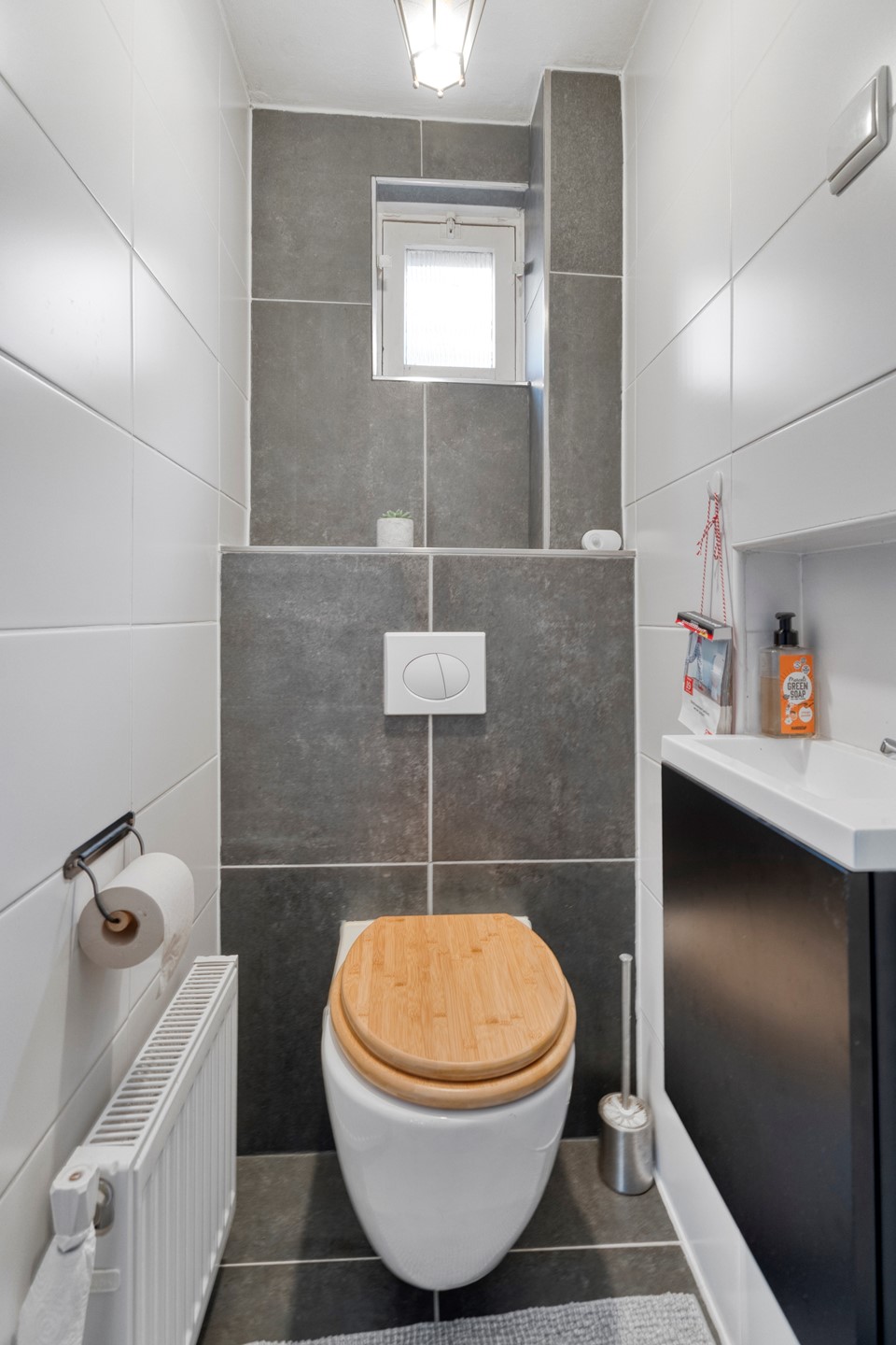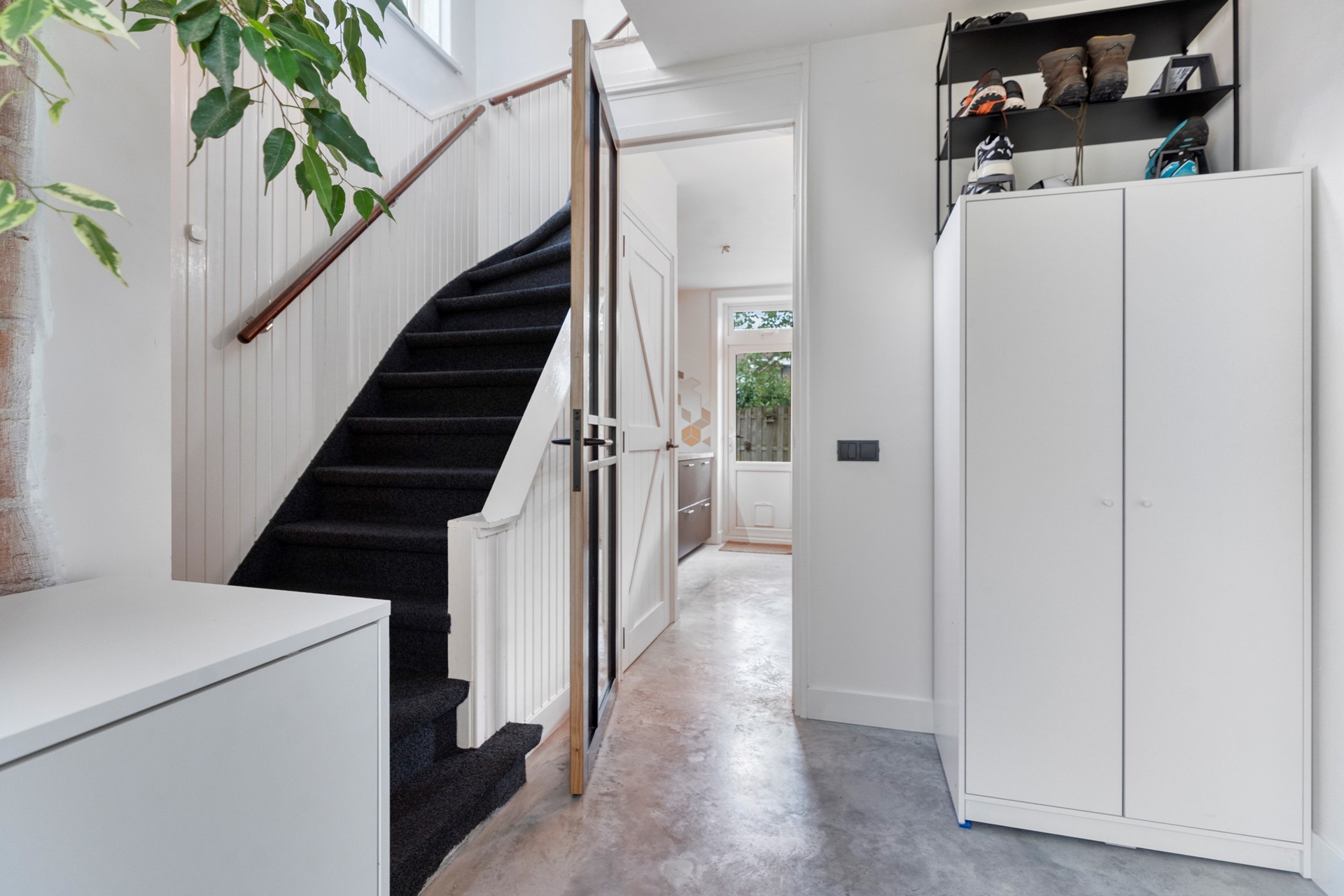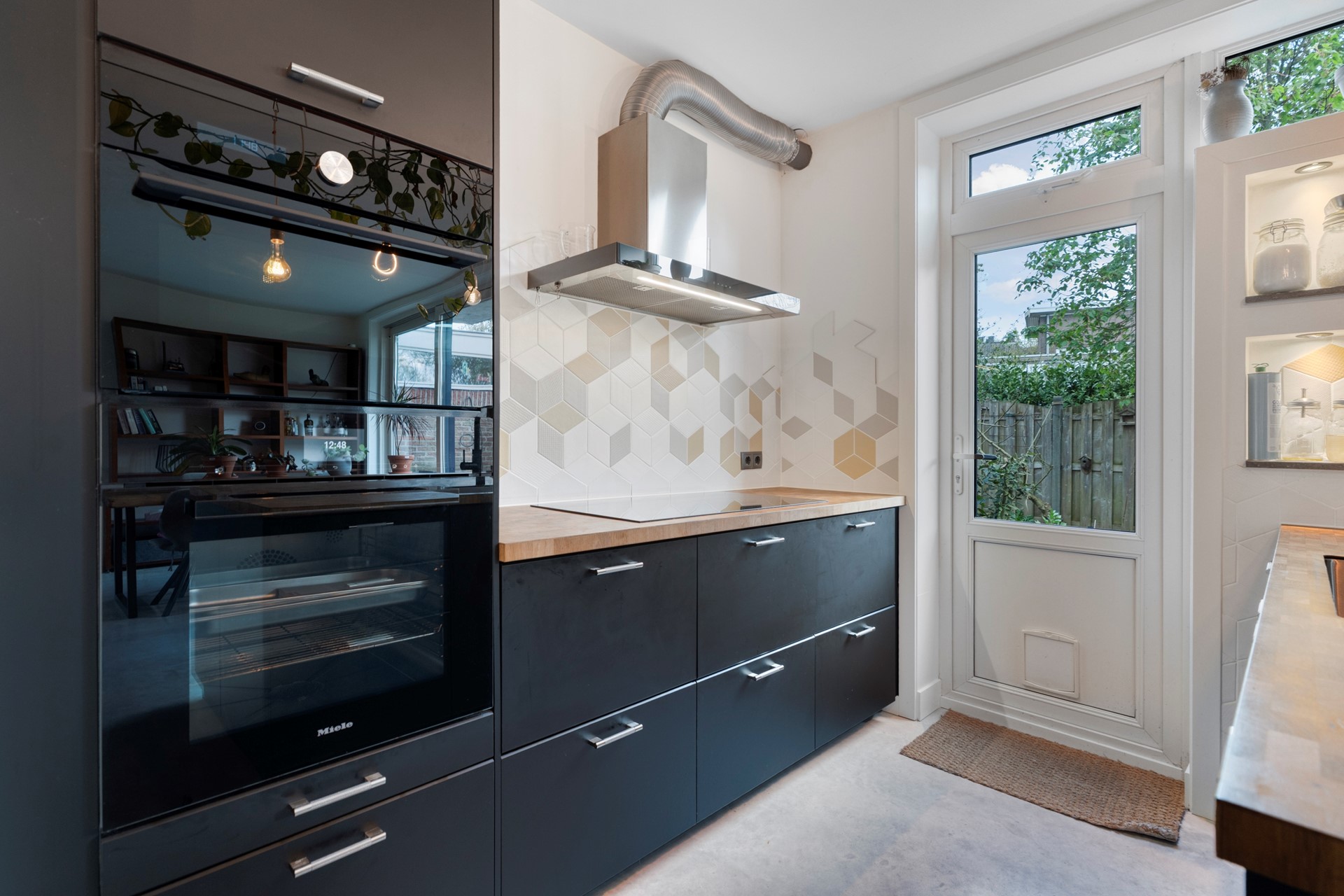 Via de entree komt u in de ruime hal met garderobe, meterkast en toiletruimte. Vanuit hier bereikt u de open keuken met praktische provisiekelder. De keuken is in 2025 volledig vernieuwd en uitgevoerd in een moderne stijl, voorzien van diverse inbouwapparatuur en een quooker, een heerlijke plek voor kookliefhebbers.