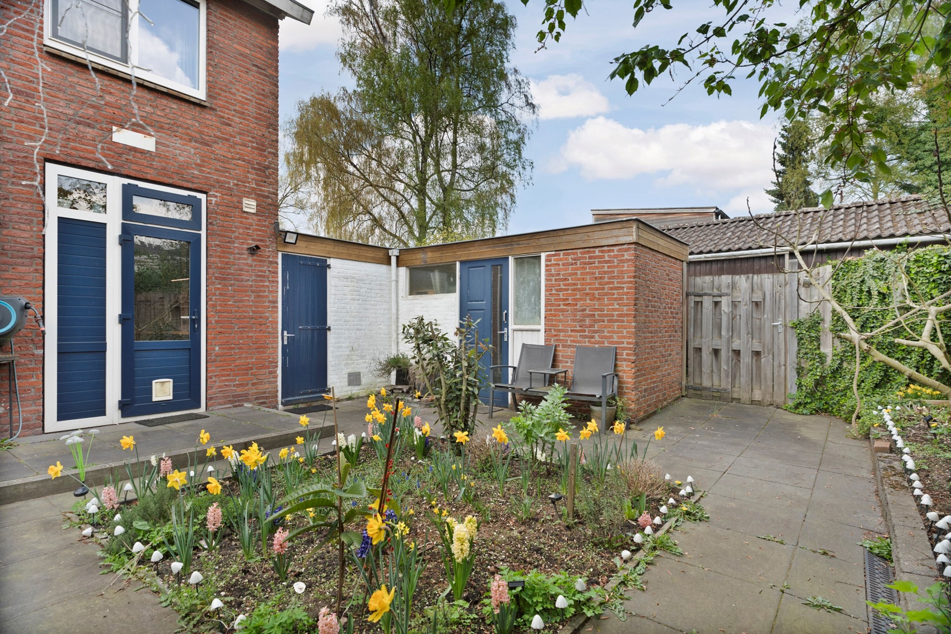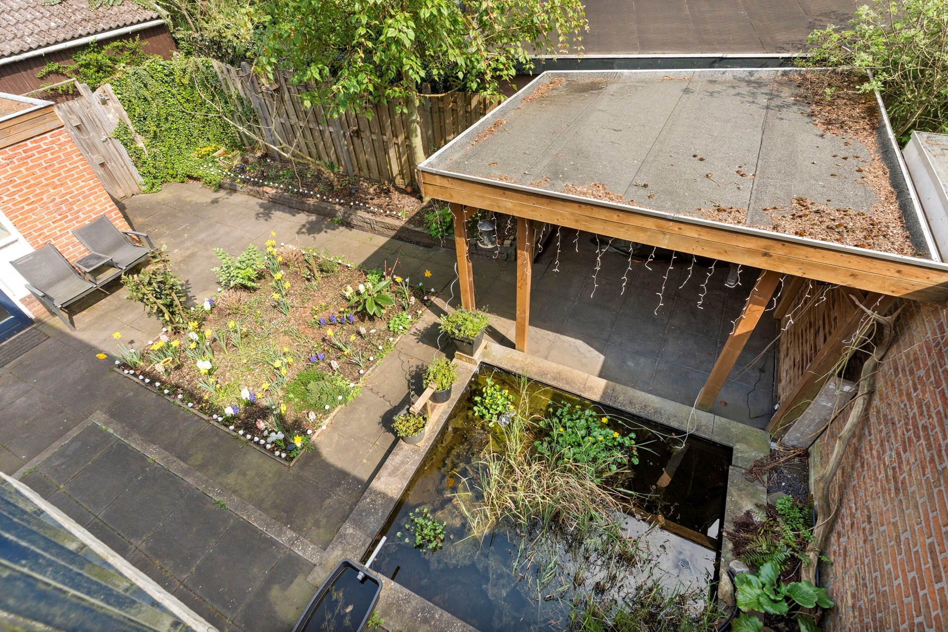 De woning beschikt over een ruime voor- en achtertuin. De achtertuin ligt op het noordoosten en is verzorgd aangelegd met een houten veranda, borders, vijver en een terras, een fijne plek om te ontspannen en te genieten van de rustige omgeving. Tevens is er een praktische achterom aanwezig.