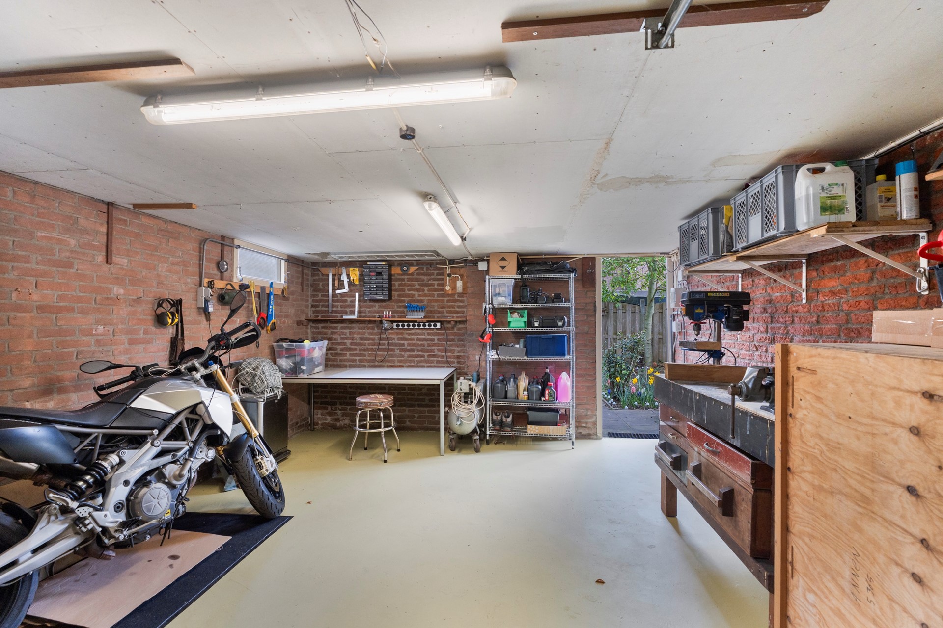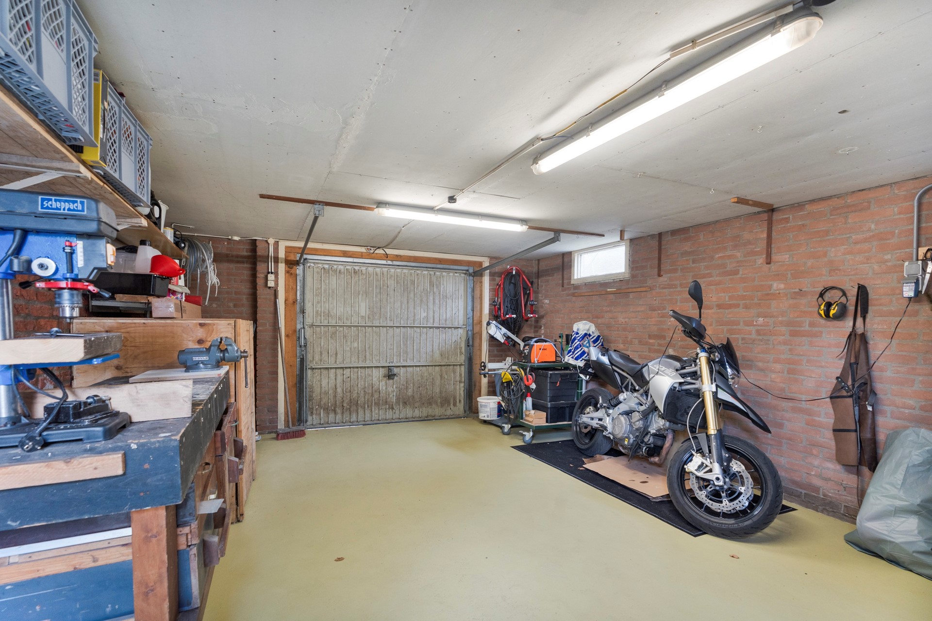 De stenen garage (ca. 24 m²) is voorzien van elektra, een kanteldeur en aansluitingen voor witgoed. Daarnaast is er een separate stenen berging (ca. 8 m²), eveneens voorzien van elektra.