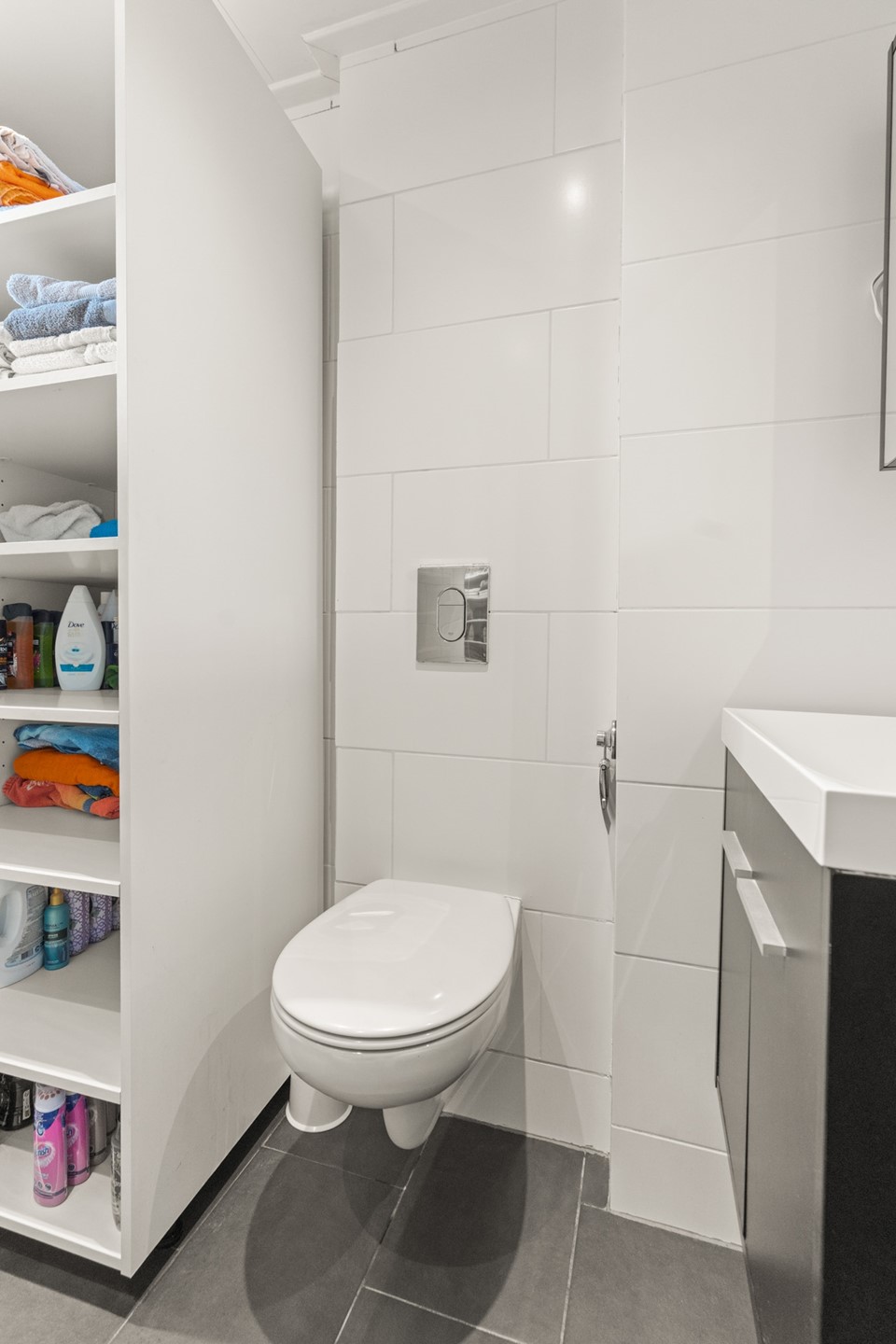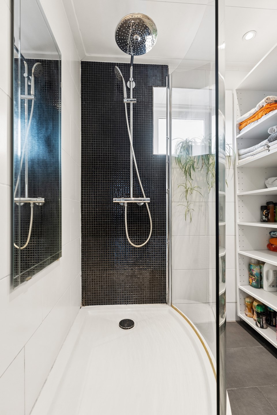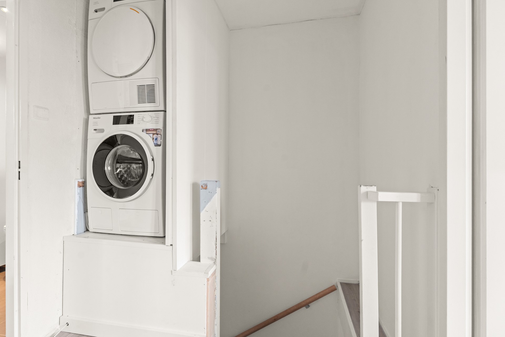 Overloop met toegang tot twee ruime slaapkamers, wasmachine/droger opstelling en een badkamer die is verzorgd en voorzien van de benodigde faciliteiten voor dagelijks gebruik. Vanuit de ruime slaapkamer toegang tot het fijne dakterras.