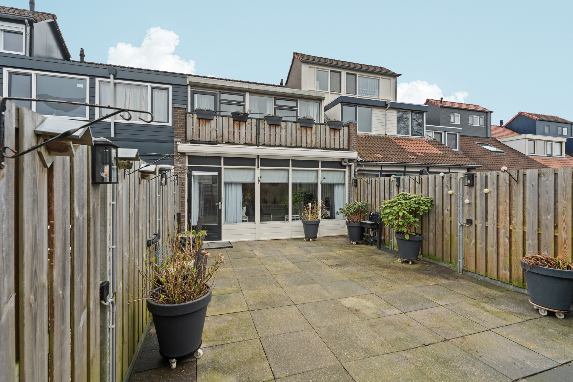 Via de woonkamer is de verzorgde achtertuin bereikbaar, met elektrische zonnescherm en een vrijstaande stenen berging. De woning is aan de voorzijde en aan beide slaapkamers voorzien van rolluiken.